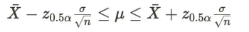 - 모분산 σ^2이 알려진 경우 모평균 μ의 100(1-α)% 신뢰구간은