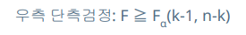 - 우측 단층검정 : F ≧ Fα(n1-1, n2-1)