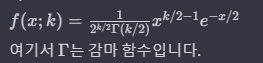 - 자유도 k 인 확률 밀도 함수