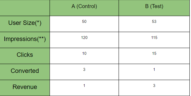 - A/B 테스트 Variant 크기 비교