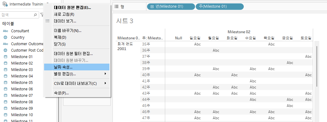 tableau에 사용되는 모든 날짜는 연도 단위로 시작