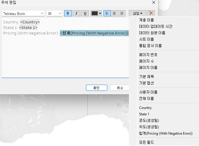 지구본 타입을 더블클릭했는데 지도가 안만들어 지면 위치필드를 바꿔주면 된다.