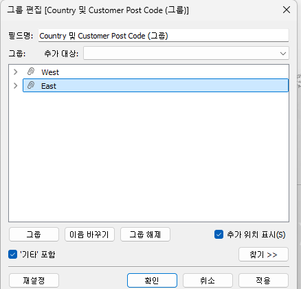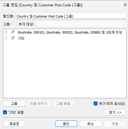 선택 된 것은 위에 나머지는 기타에 있기 때문에 상황에 맞춰 이름을 다시 만들어 주면 편하다