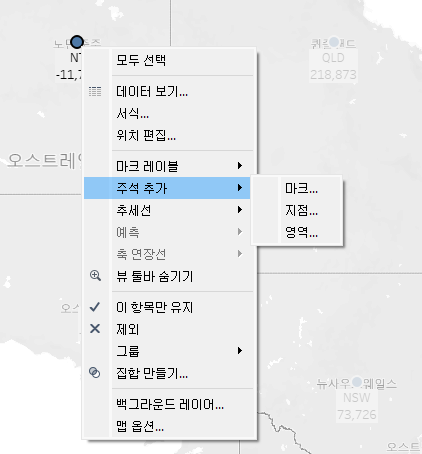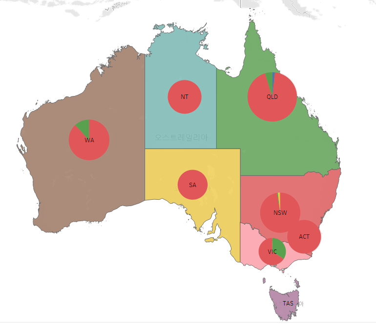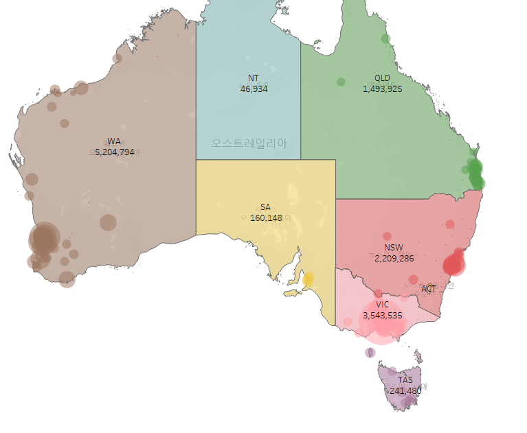 바로 어디에서 많이 팔렸는지를 확인 가능하나 값이 너무 작으면 안보일 수 있다