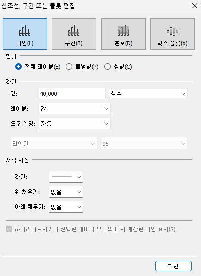 평균 선을 그었을 때 보고싶은 것만 드래그 하면 드래그 한 값의 평균 값은 따로 나온다