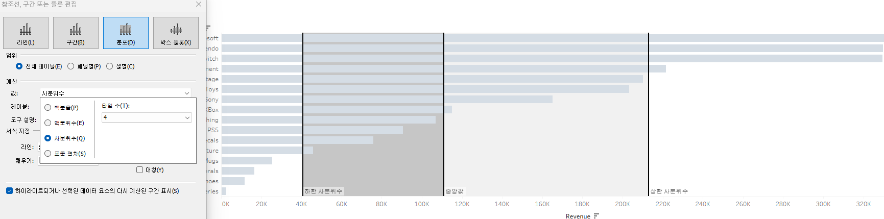 사분위수 및 중앙값