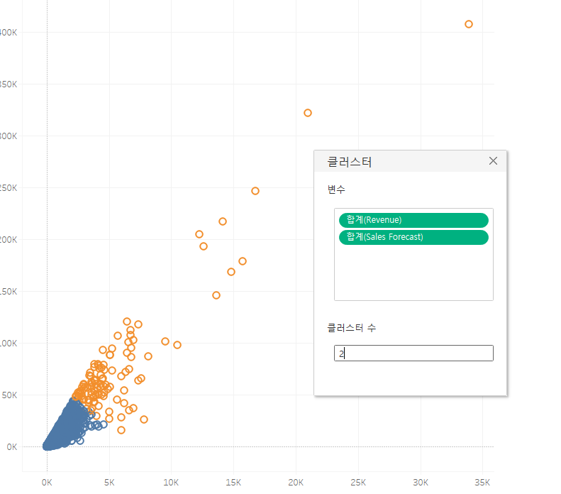 클러스터는 추가할 변수를 바탕으로 계산된다.